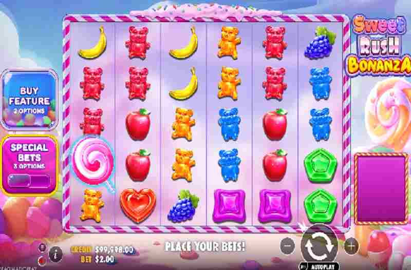 A nivel de jugabilidad, Sweet Rush Bonanza transmite frescura. Los premios aparecen de manera clara, sin necesidad de revisar líneas específicas. Basta con que los grupos de símbolos idénticos coincidan para que el pago se active. Esa mecánica directa facilita el acceso a quienes nunca han jugado antes.